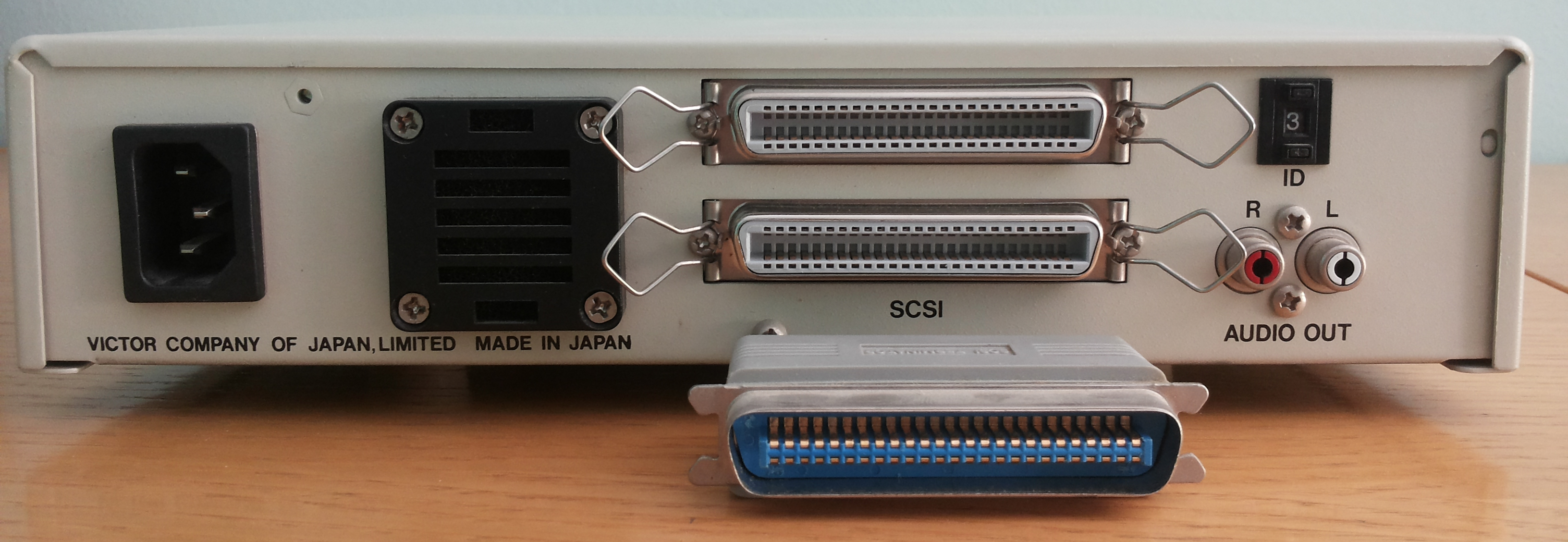 Masterizzatore SCSI Teac 8x, in case JVC dotato di alimentatore e ventolina, con terminatore SCSI.