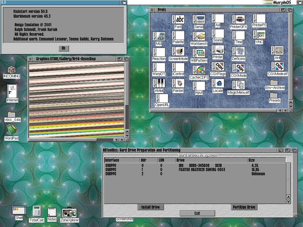 - Note: Perfettamente riuscito questo porting per MorphOS della migliore GUI per